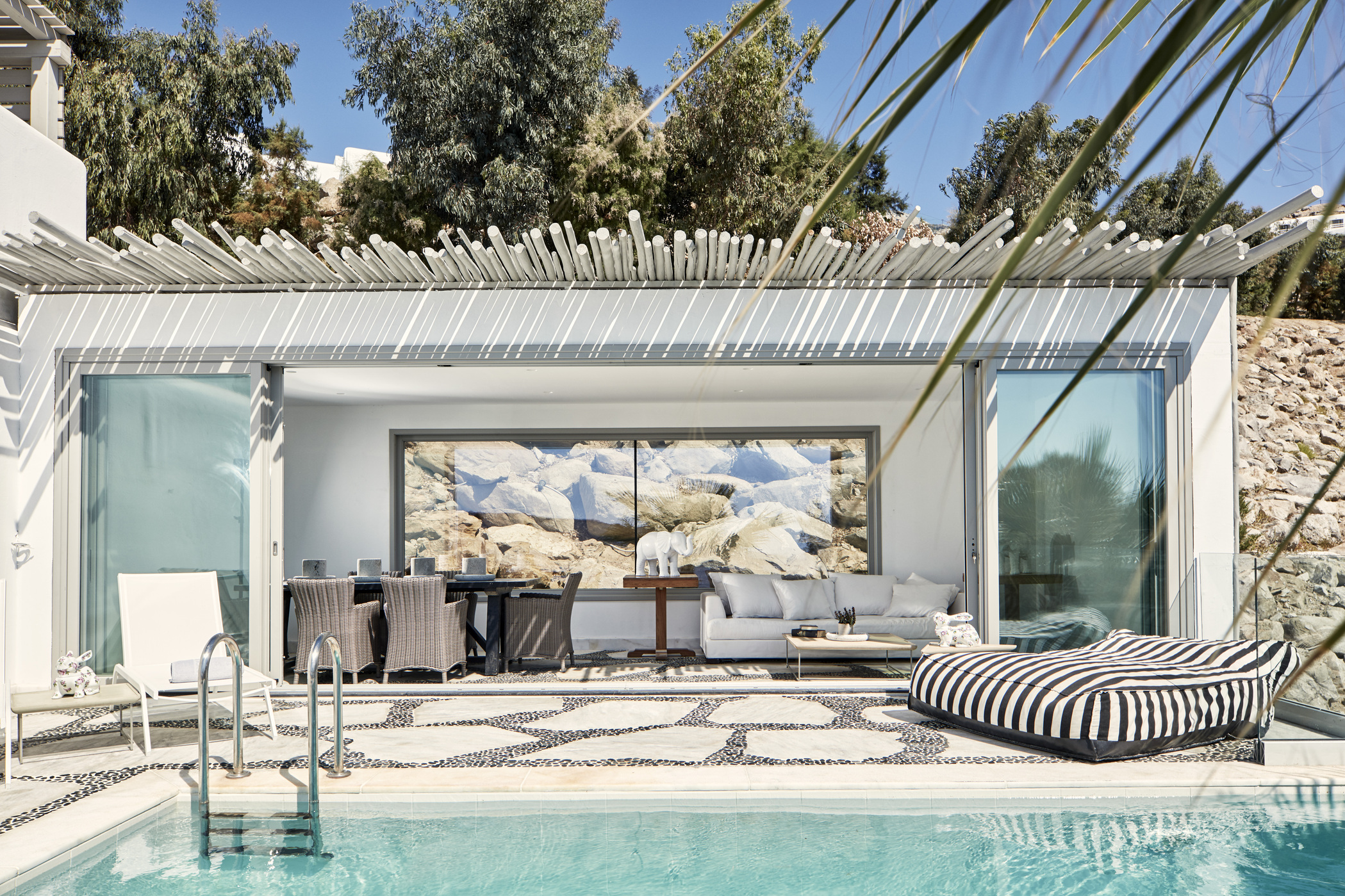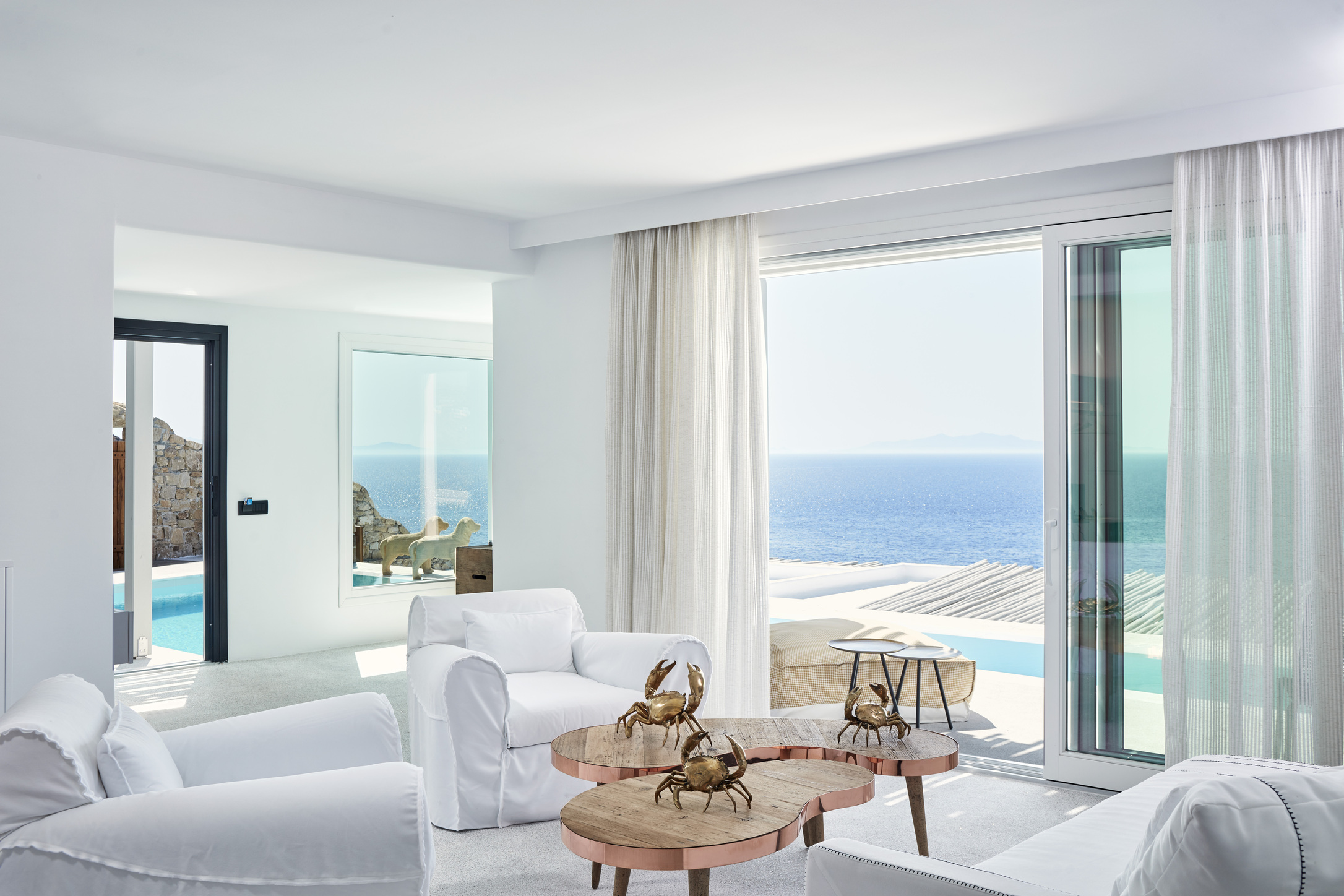 The Myconian Villa Collection is defined by privacy and individuality. Each villa is architecturally distinct, offering generous living spaces, dedicated service and complete seclusion. Among them, the Lover’s Suite has been conceived specifically for couples, providing an intimate and self-contained setting for proposals and romantic stays that prioritise autonomy and discretion.