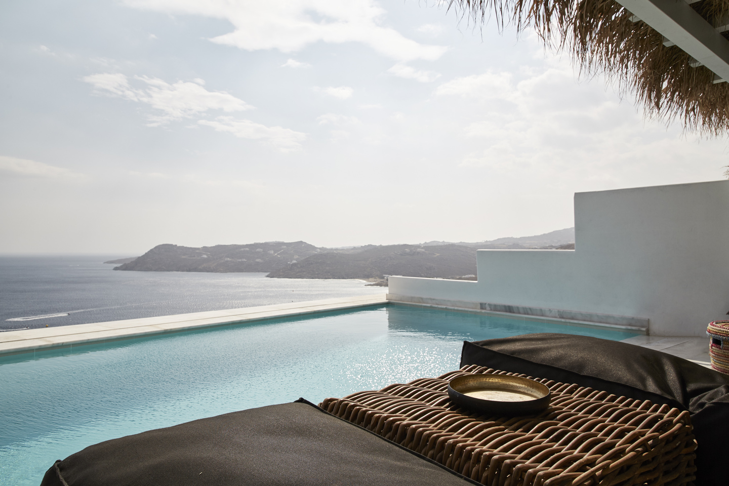 Myconian Naia offers a more restrained interpretation. Designed as an adult-only retreat close to Mykonos Town, it appeals to couples seeking calm, architectural clarity and an environment centred on time together. With a limited number of suites and a strong emphasis on discretion, Naia lends itself naturally to honeymoons and understated romantic stays.
